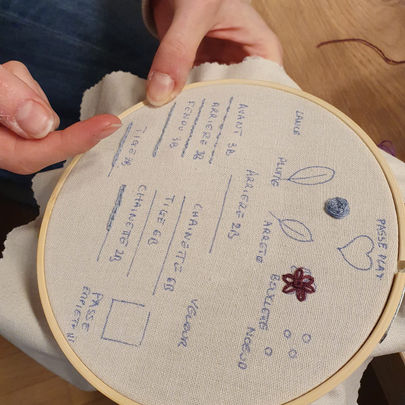Vous pourrez choisir le motif d'après une sélection que je vous propose, mais vous pourrez tout à fait dessiner vous-même votre motif si vous le souhaitez. Vous repartirez avec votre broderie sur son tambour, prête à être exposée !